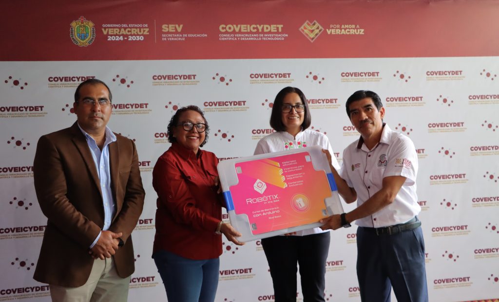 La entrega de estos kits representa la segunda etapa de colaboración entre el Gobierno del Estado de Veracruz —a través del COVEICYDET y la SEMSyS— y RobotiX, como resultado de las gestiones para potenciar el talento tecnológico juvenil.